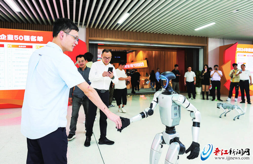 2025年晋江市企业创新发展大会上,与会人员与智能机器人亲密互动。