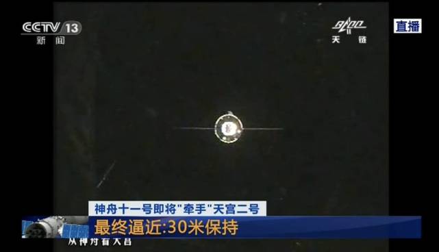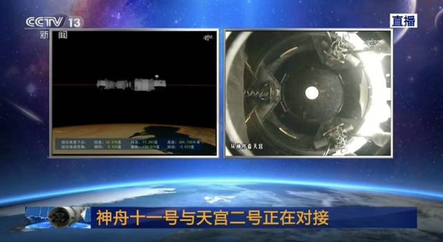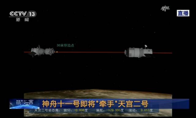 北京航天飞行控制中心就对接准备状态进行最终确认后,神舟十一号开始向天宫二号缓缓靠拢。