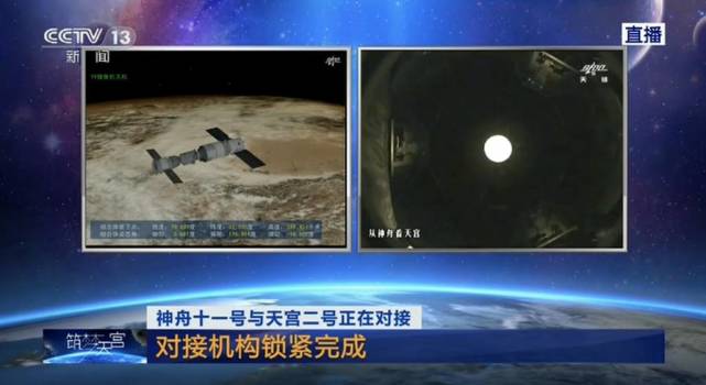 神舟十一号与天宫二号对接环接触后,按程序顺利完成一系列技术动作,对接机构锁紧,两个飞行器建立刚性连接,形成组合体。