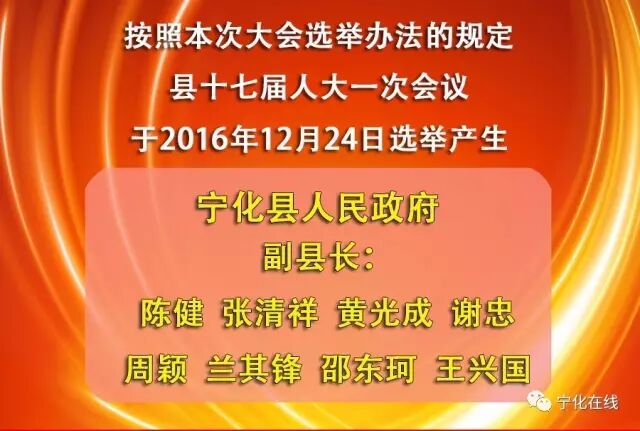 副县长:王楠、林大茂、沙陈龙、黄立辉、连云进、孙元玲、牛弋