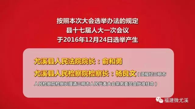 12月24日上午,尤溪县十七届人大一次会议先后召开了第三次全体会议、第四次全体会议,选举产生了新一届县人大常委会领导班子、县政府领导班子以及县法院院长、县检察院检察长、县人大常委会委员、市十三届人大代表。