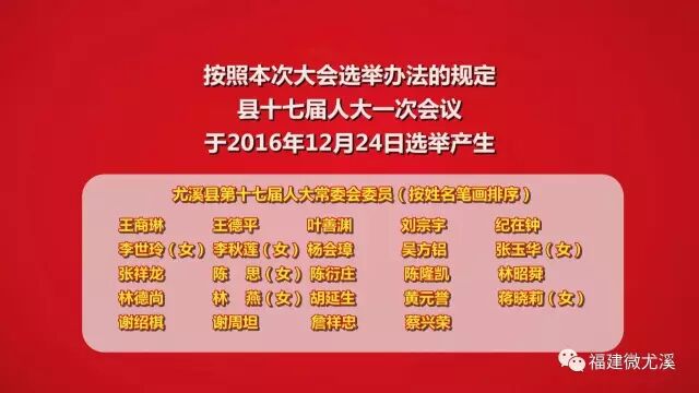 王涛、叶美霞、冯彤、江昌金、纪谷炜、李芙琴、李思锦、张伟、张基相、张超凡、陈志宗、林锦明、罗起泉、胡庆文、姜丽伟、徐玉琴、徐宏、黄阿胜、曾荣芳、谢荣泉、熊祥泰、魏少华