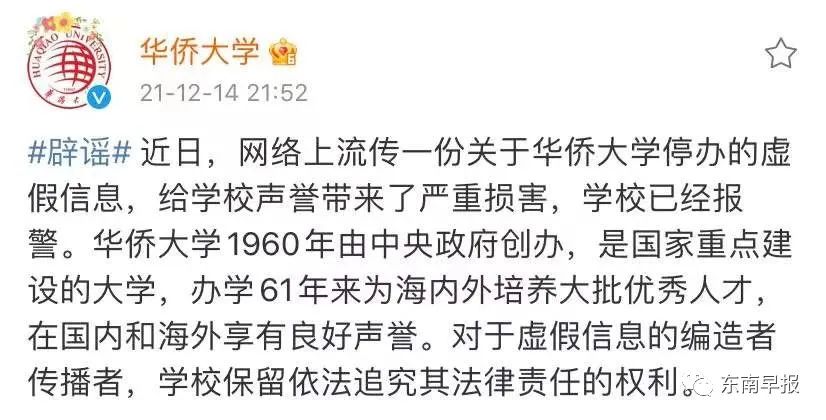 关于华侨大学停办的虚假信息