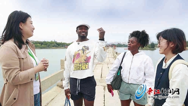 古德温一行首先走进世遗点安平桥,碧波荡漾的水面与徐徐秋风相映成趣,市民、游客在此悠然休憩。古德温一边漫步安平桥,一边了解石桥的“前世今生”。当听闻这座石桥始建于1138年,他不禁直呼“amazing(太神奇了)”;当了解到每年端午节安平桥会有传统抓鸭活动时,他更是兴致勃勃地表示“希望有机会亲身参与”。参观途中,古德温偶遇练习五祖拳的小朋友,他驻足观赏表演,用手机记录下精彩画面,还不忘为孩子们点赞喝彩。