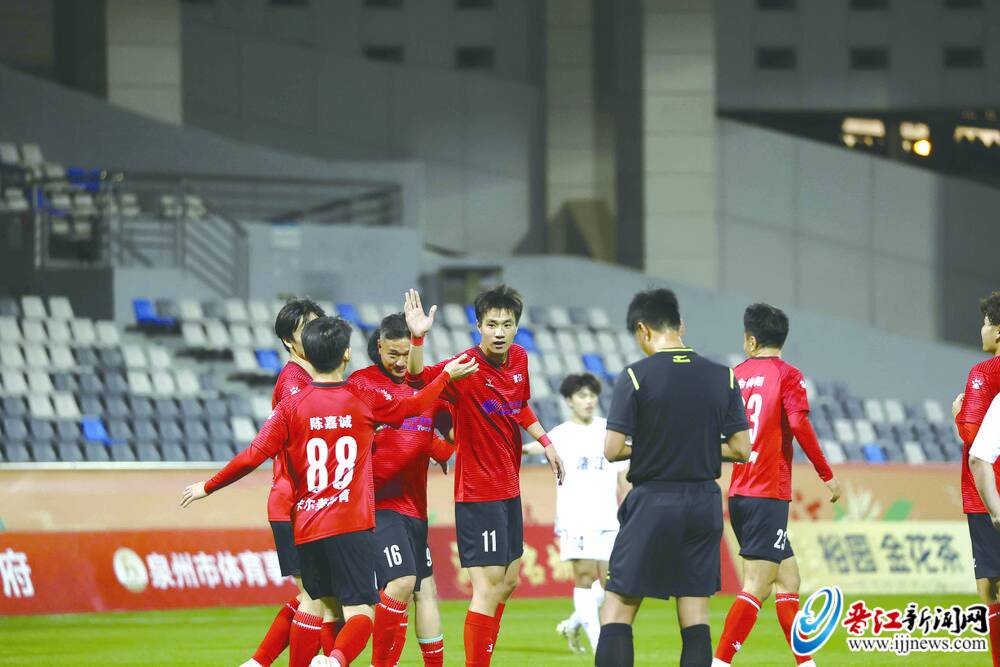 近日,2026年·裕园金花茶泉州市首届“迎春杯”足球联赛迎来小组赛关键一战,晋江队与洛江队展开“生死对决”。作为泉州目前市级男子足球最高水平赛事,本场比赛直接决定晋江队的晋级命运。最终,晋江队凭借精准进攻与顽强防守,以2∶1险胜洛江队,成功闯入四强。