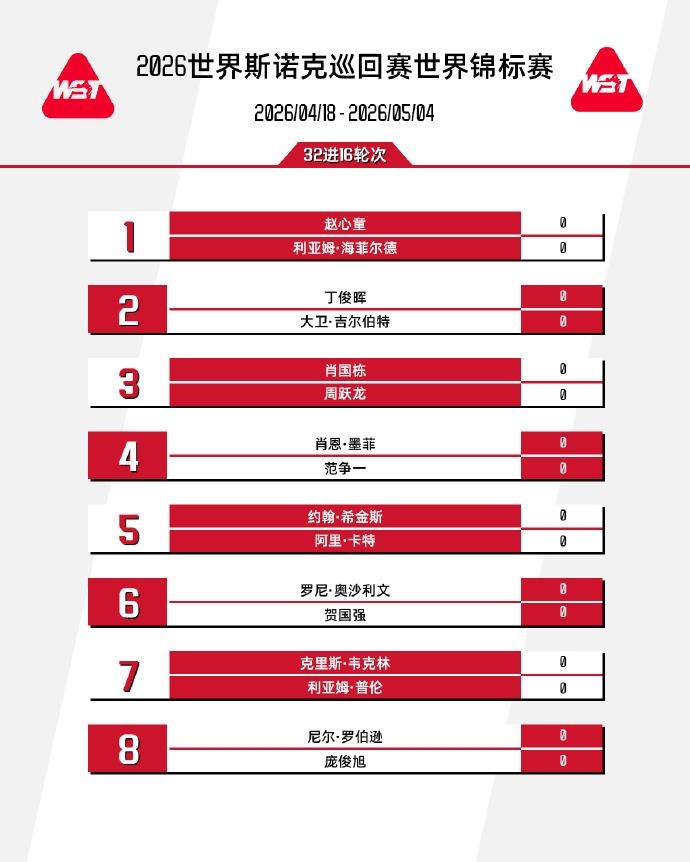 2026斯诺克世锦赛正赛签表